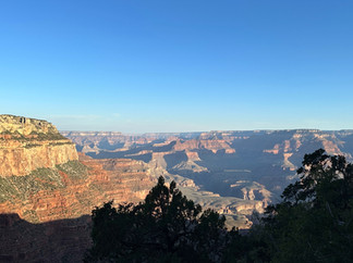 We took the 5:00 am " Hiker's Express" Shuttle to the South Kaibab Trailhead. This route is the shortest and steepest way to the bottom, with a very steep climb back up to the rim. We hiked to " Ooh Aah" Point Overlook ( ~1.8 miles roundtrip). Leaving so early - we let the more able hikers from the shuttle, (who were hiking to the bottom) start ahead of us. As we were only hiking to the first view point, this left us with the trail to ourselves for most of the hike and cooler, shady conditions hiking back up! We saw a cool longhorn sheep as we came back out to top of the trail.