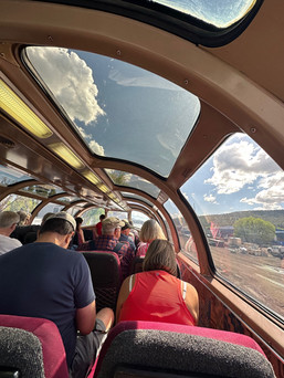 Our plans to enjoy the North Rim were squashed by an uncharacteristicly delayed opening this year - so we decided to enjoy the train experience as our initiation to the Grand Canyon. We booked observation dome seats leaving from the quintessential small town America of Williams Arizona. Prior to boarding- there a a little wild west show - properly cheesy and very satisfying!
